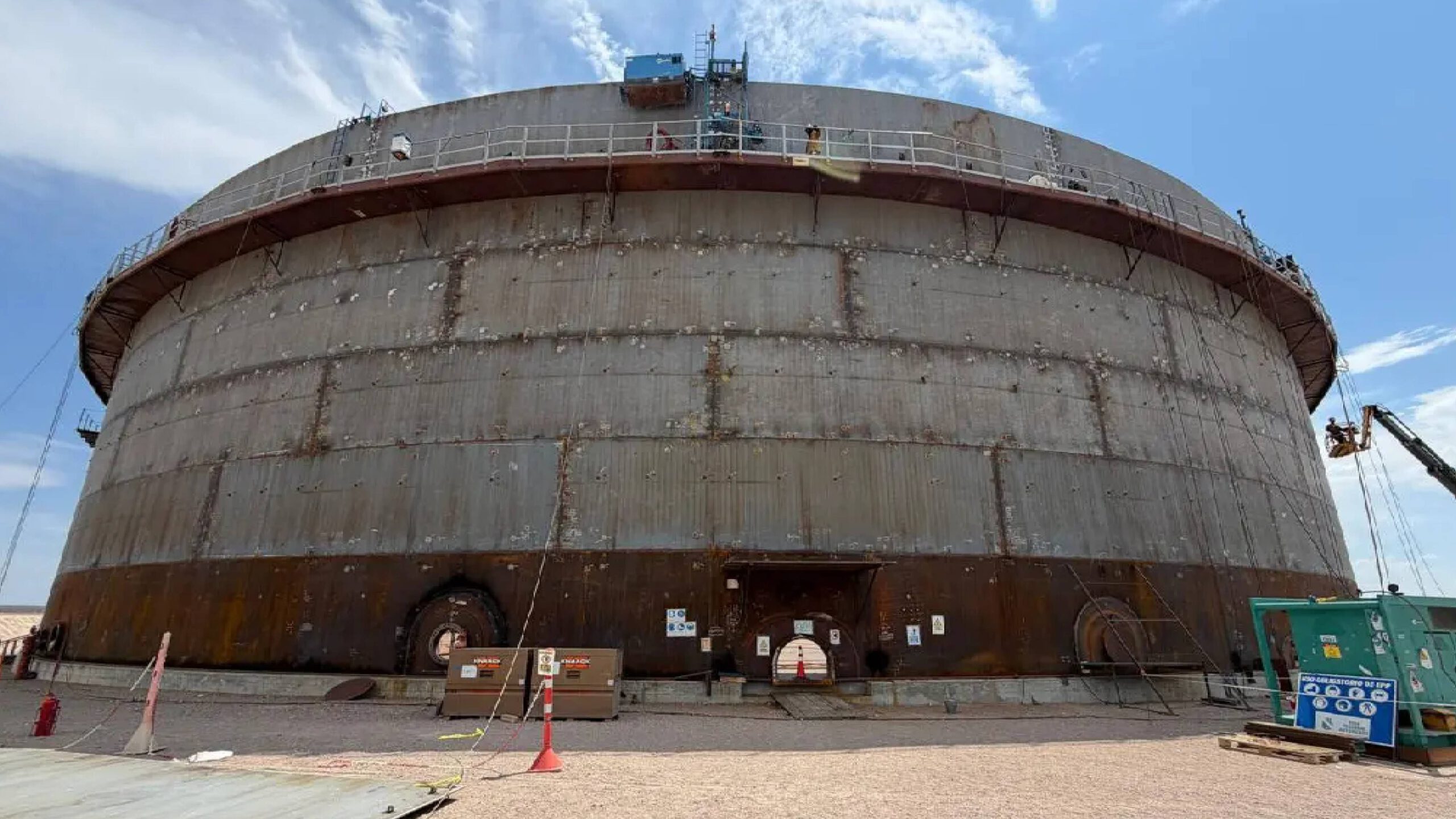 En el frente marítimo de Punta Colorada se desarrolla un sistema de almacenamiento de gran escala compuesto por seis tanques con una capacidad total de 720 millones de litros.