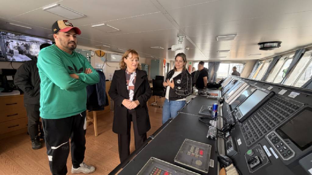 En el marco del arribo, la administradora del Puerto, Digna Hernando, recorrió la embarcación y mantuvo un encuentro con el capitán, la tripulación y representantes de la empresa armadora, interiorizándose sobre el desarrollo de la campaña, las condiciones operativas y las perspectivas para la temporada.