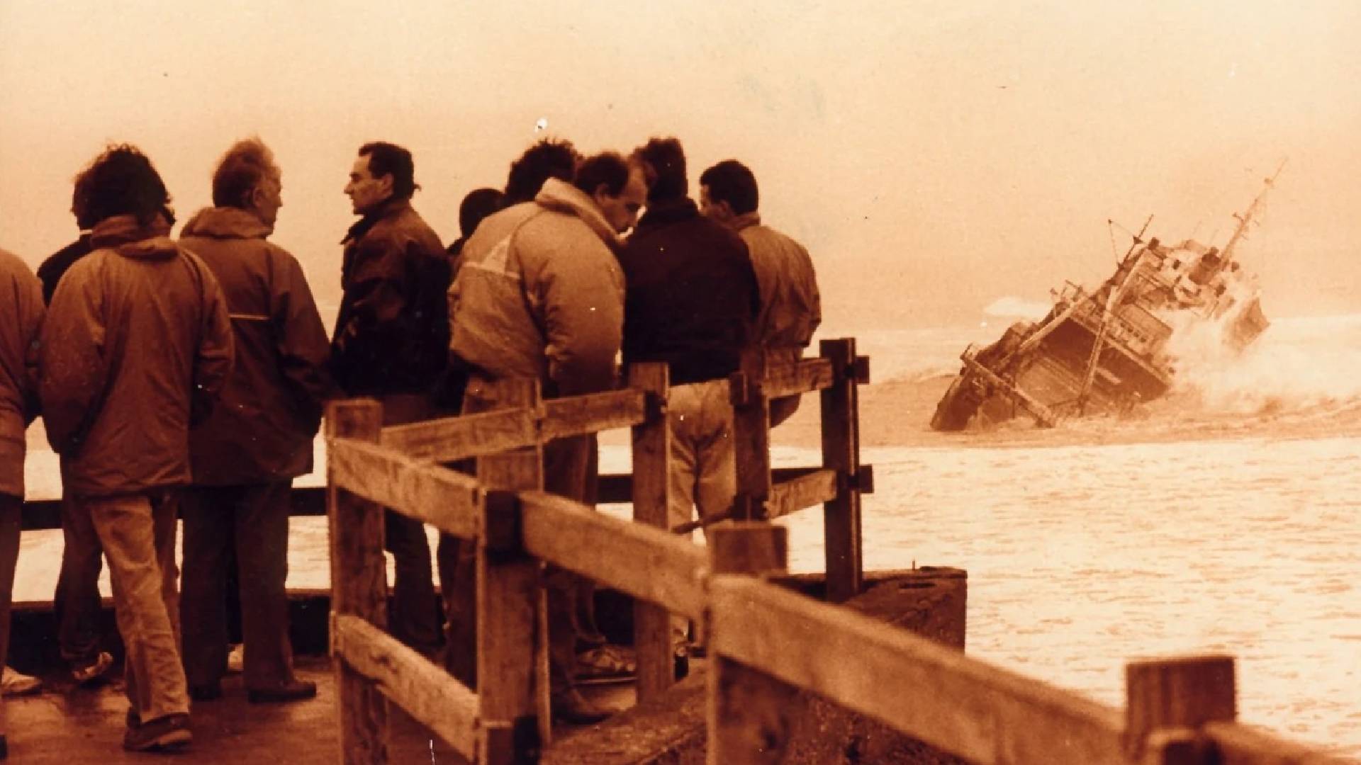 La historia comenzó en junio de 1991, cuando una tormenta histórica castigó con violencia la costa atlántica. Las ráfagas de viento superaron ampliamente lo habitual, el mar se volvió furioso y el puerto también sintió el impacto.