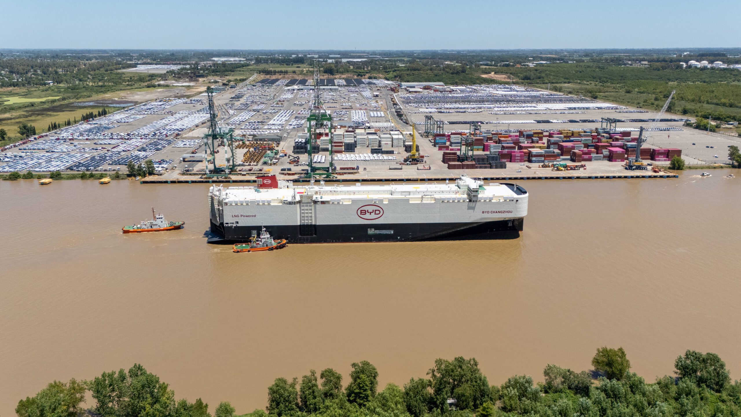 El puerto de Zárate volvió a ser escenario de una operación de gran escala con la llegada del buque BYD Changzhou, que desembarcó alrededor de 5.000 vehículos de origen chino en la terminal especializada en cargas rodantes.