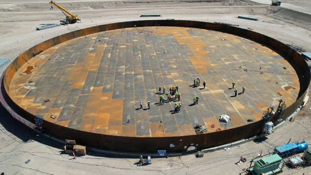 La construcción de la terminal petrolera de Punta Colorada en Río Negro avanza con un hito clave: el inicio del montaje de la playa de tanques de almacenamiento del proyecto Vaca Muerta Oil Sur (VMOS).