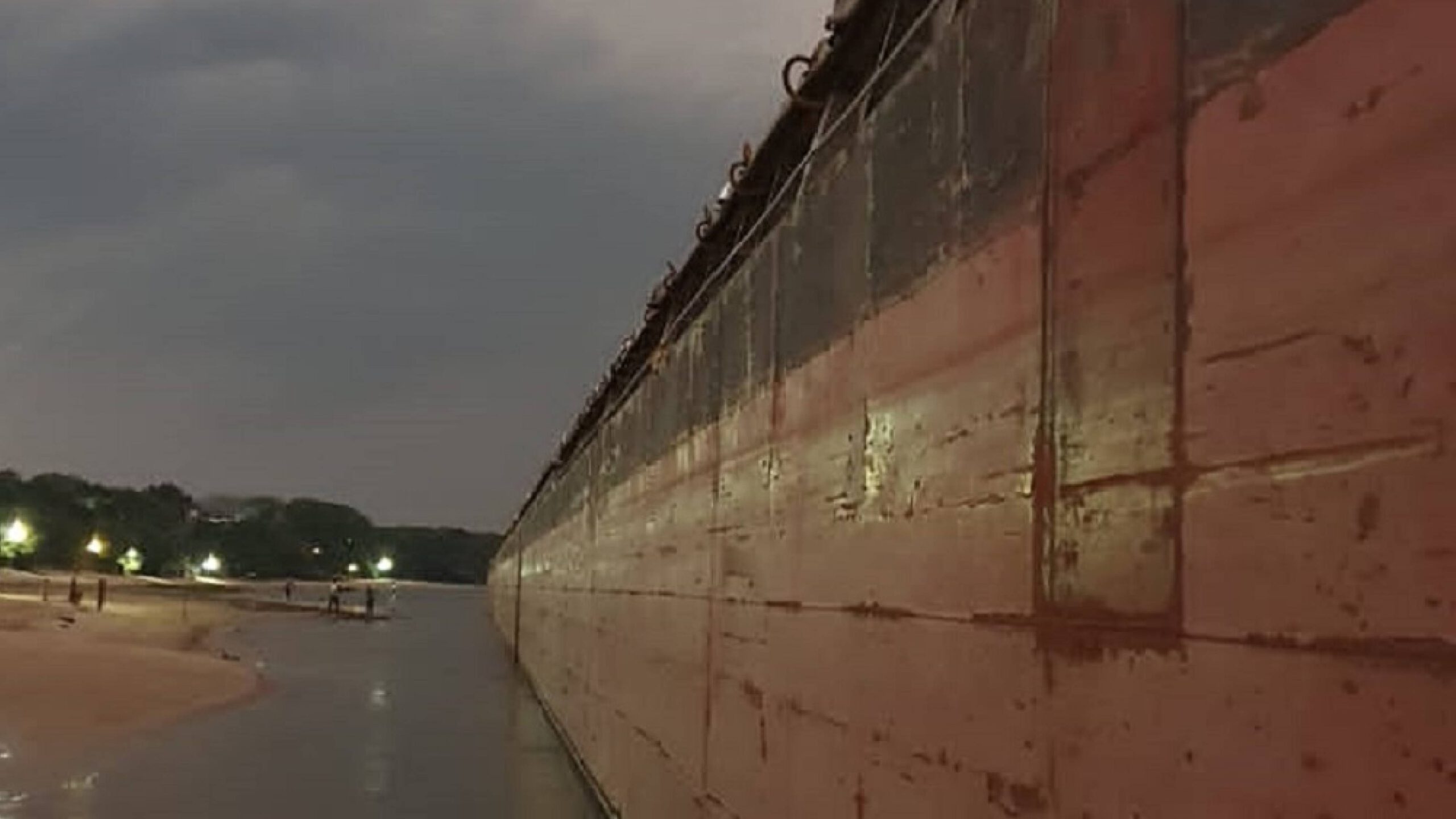 La trayectoria de las barcazas y la reacción de la gente evitaron consecuencias mayores, aunque el impacto visual del convoy avanzando hacia la costa causó preocupación entre los presentes.