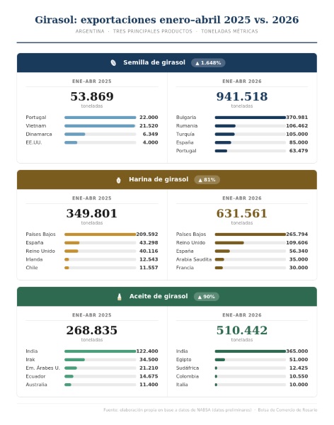 Uno de los datos más relevantes del informe es el salto del girasol argentino en el mercado europeo.