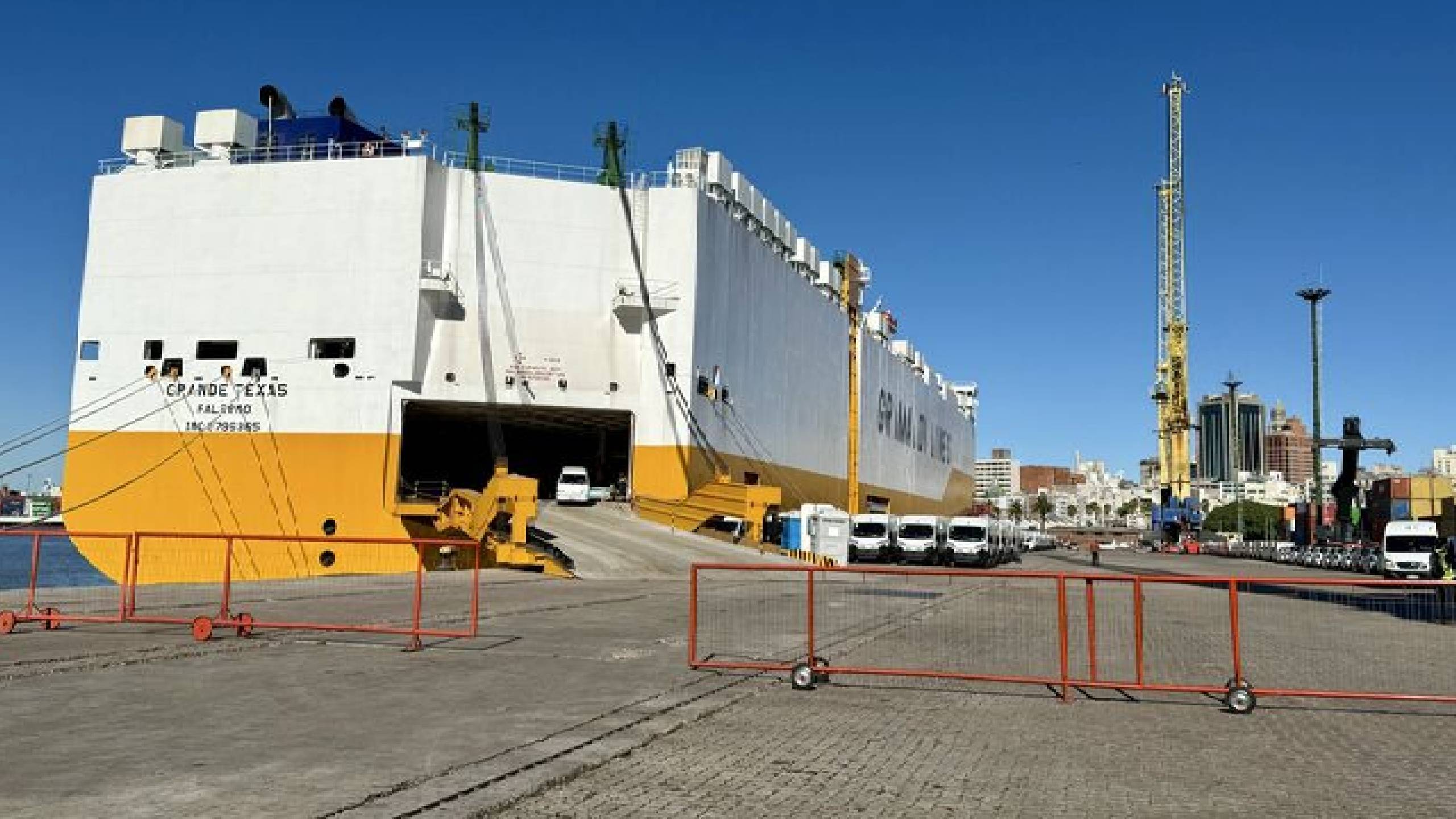 En el marco de este servicio, el buque Grande Texas, con capacidad para unas 7.600 unidades, realizó su arribo al puerto de Montevideo, marcando el inicio operativo de la línea.