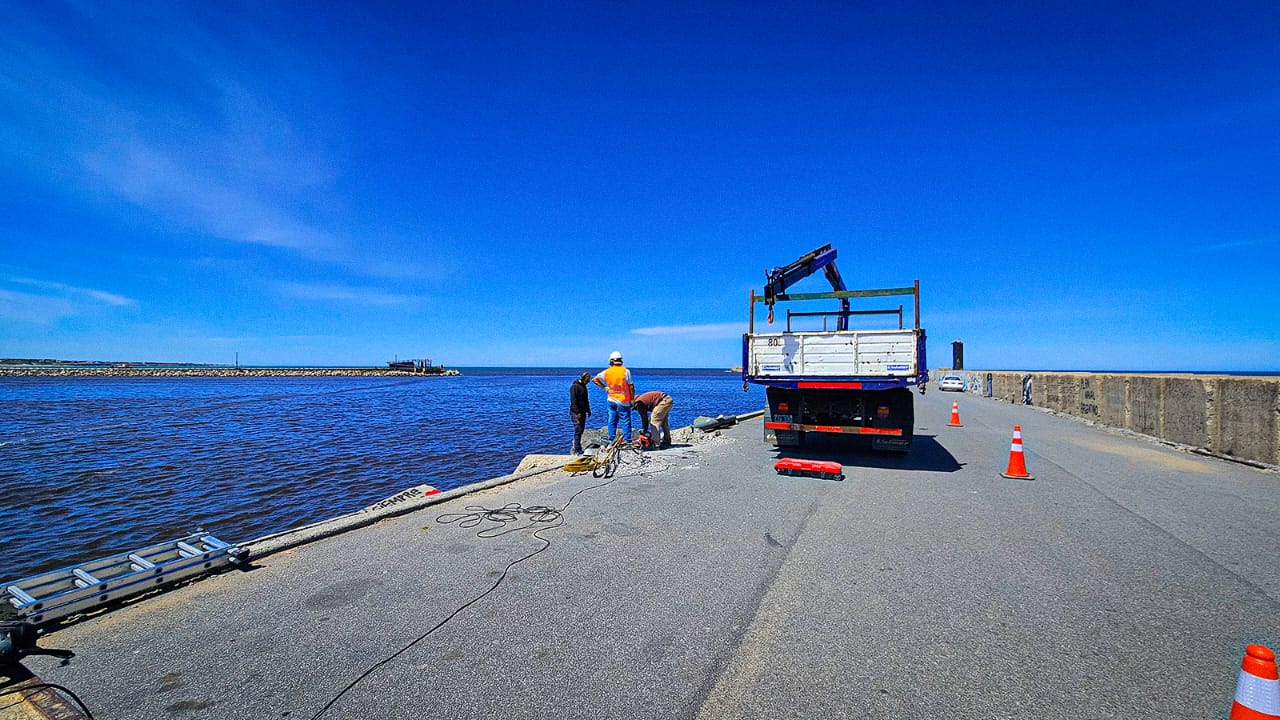 El Consorcio de Gestión de Puerto Quequén informa que se están llevando a cabo trabajos de mantenimiento, específicamente en el reemplazo de columnas de alumbrado en la Escollera Sur.