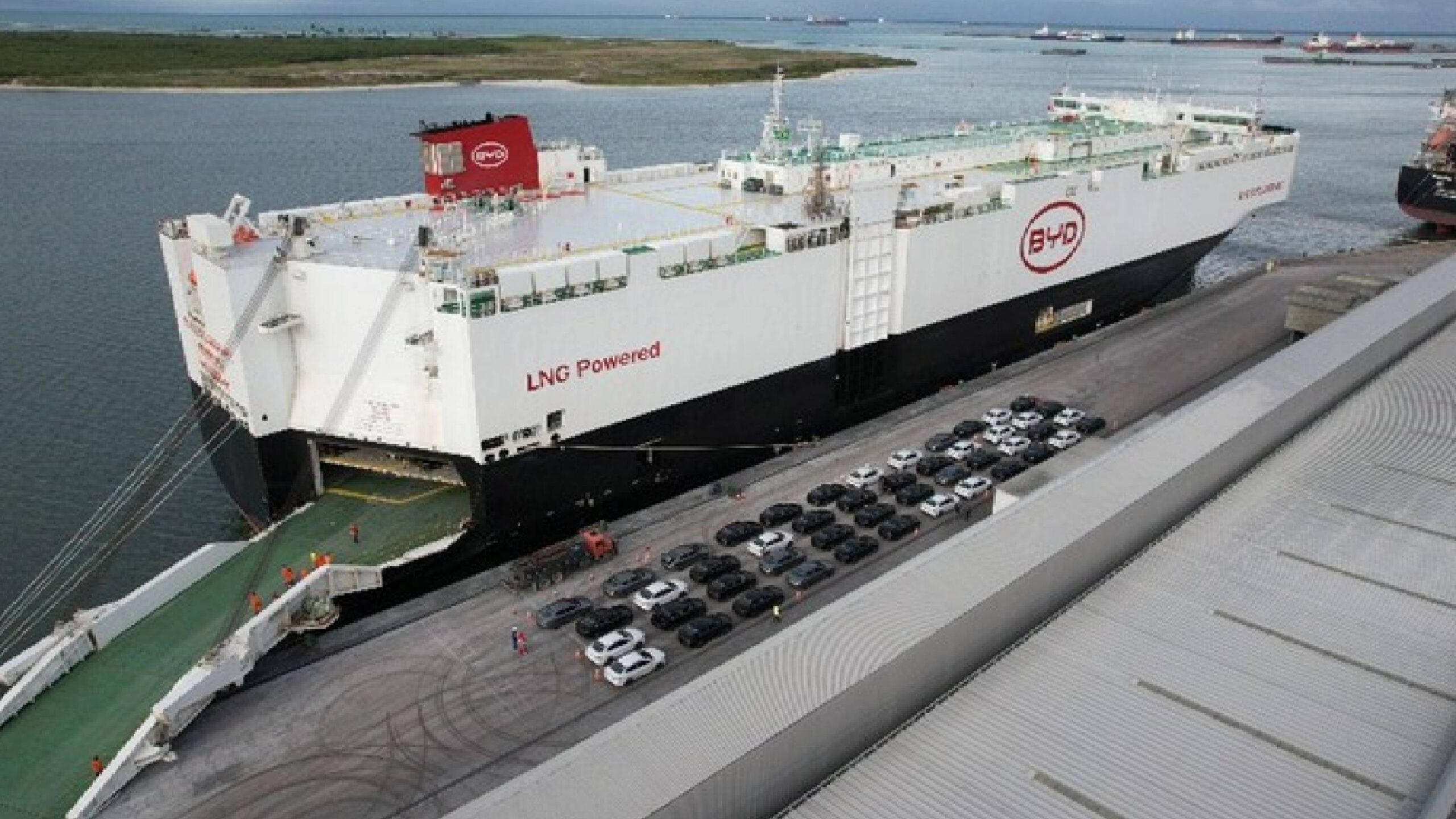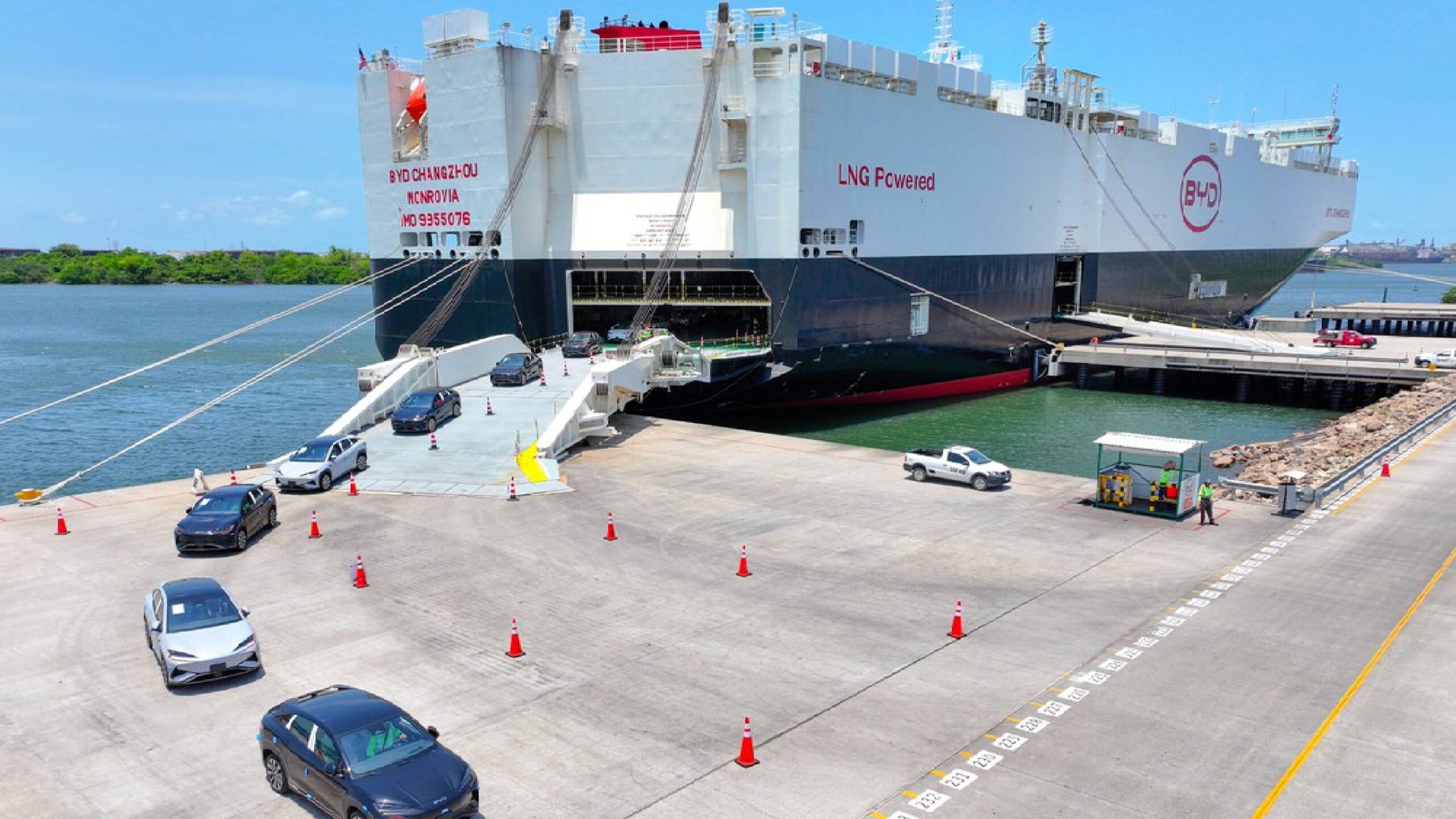 El Changzhou es el segundo buque de una flota de ocho cargueros ro-ro (roll-on/roll-off) de BYD, diseñada para embarcar y desembarcar vehículos por sus propios medios.